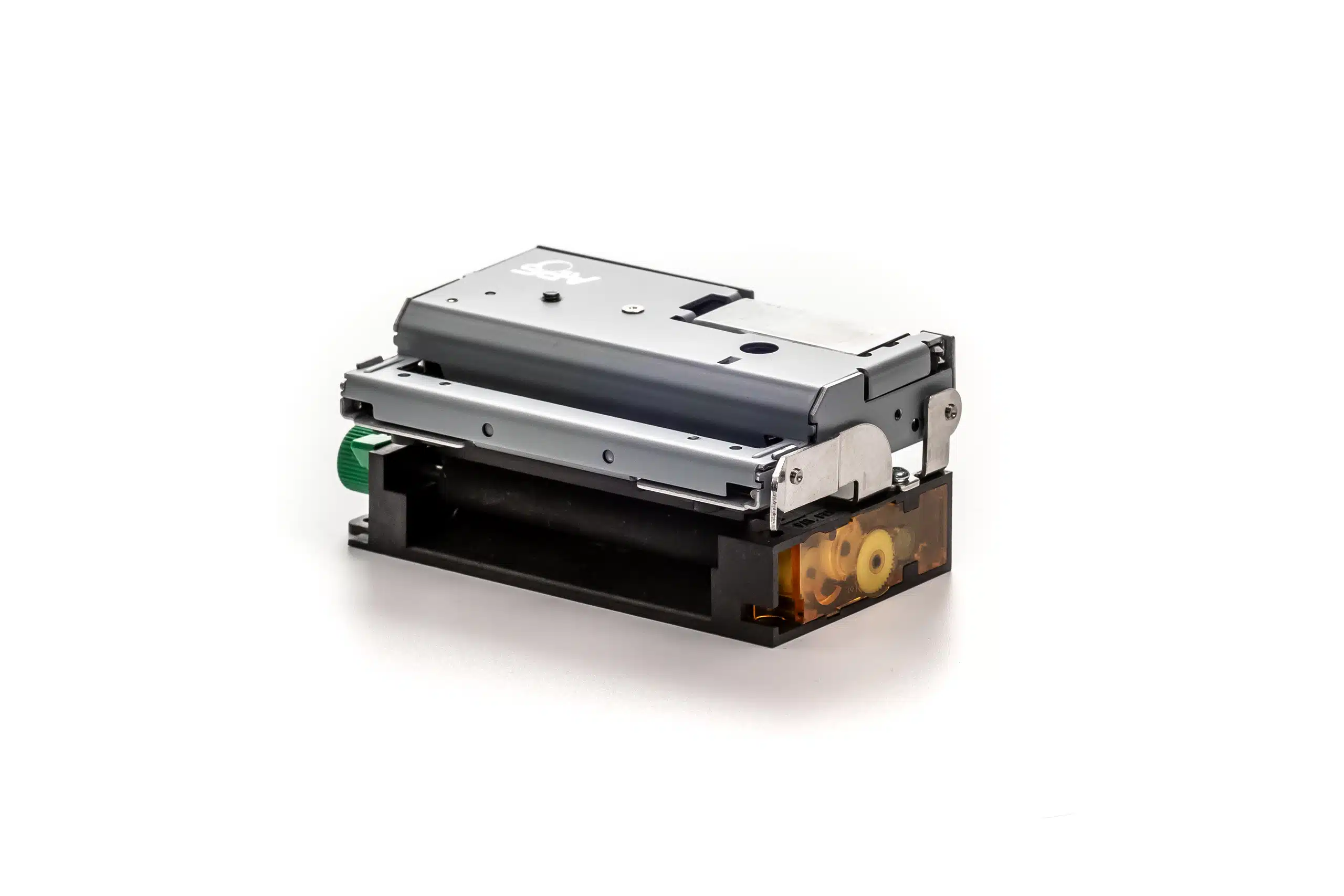 Impressora compacta de 24V com cortador e carregamento traseiro.